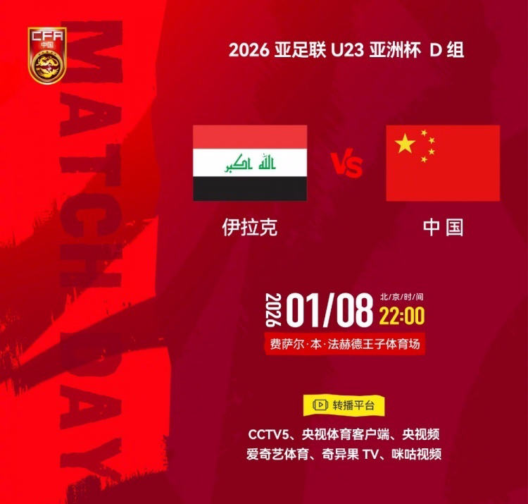 而伊拉克是首届U23亚洲杯冠军,上届则斩获季军,实力不容小觑。U23国足此役将力争8年后,再迎开门红。