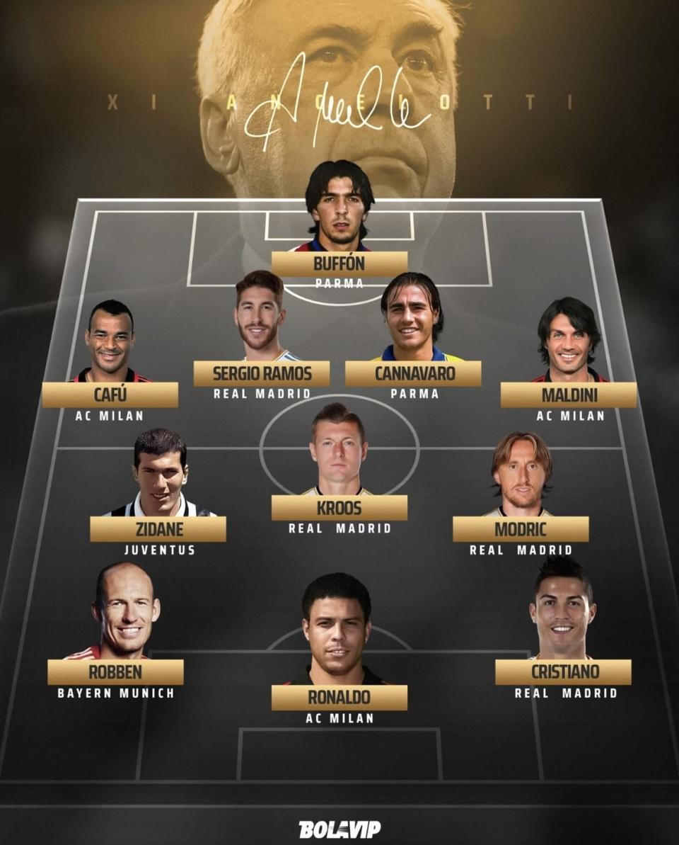 最近Bolavip发布了安切洛蒂最佳阵容。布冯、马尔蒂尼、齐达内、C罗这些名字都在名单里,光看配置就能感觉到强度。同时,卡卡、伊布这类安切洛蒂执教生涯里分量很重的球星没入选,挑人思路也更偏“直接上最硬的”。把这套阵容放到现在这种高强度逼抢、转换更快的比赛里,他们的打法和强度能不能跟得上?